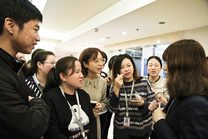 答對(duì)題目的同事正在“下湯圓”